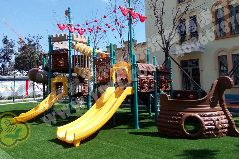三河北大培文幼兒園海盜船系列滑梯,真實打造海盜船模式,逼真船頭設計,讓孩子仿佛真有揚帆起航的樂趣。滑梯塑料部分采用進口工程塑料,色彩鮮艷,常年不褪色;鐵件部分烤漆