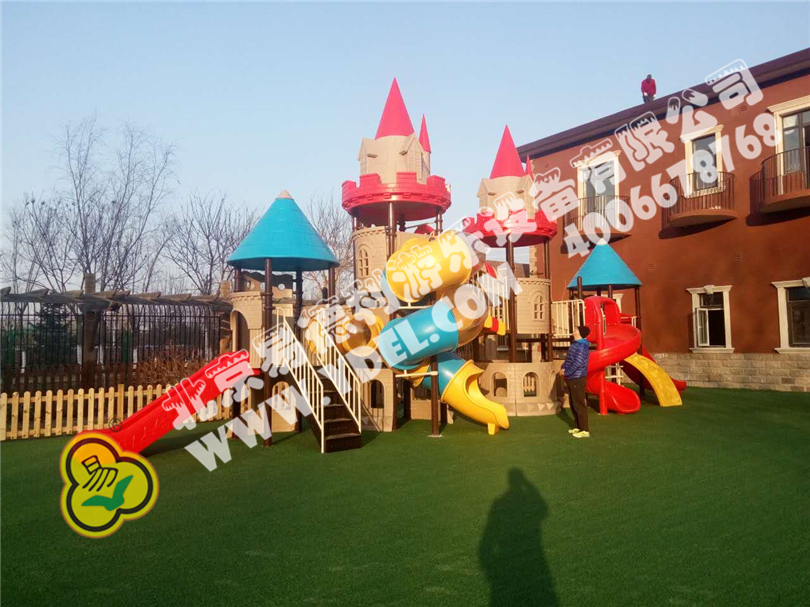 來廣營梧桐樹幼兒園戶外城堡大滑梯,一看就高大上,邊角的木質綜合拓展滑梯,鉆筒、蕩橋、軟梯和不銹鋼滑梯、秋千座椅,更有網繩能量塔搭配木質滑梯,全采用進口紅梨木,材質高功能強