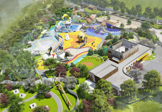 大地鄉野探索樂園,是大地風景文旅集團旗下大地鄉居全新研發的自有鄉村親子品牌產品,產品研發的初衷是希望為父母和孩子們提供一個與眾不同的家庭樂園,更令人流連忘返的場所。圍繞無動力樂園和萌寵互動,項目打造了“夢想天空”、“愛的部落”和“歡樂水寨”等原創親子板塊,以及眾多獨一無二的游樂項目。圍繞珍稀濕地生物“勺嘴鷸”,樂園打造了“小勺子”主題IP形象;設計基調以羽毛的白色為主,融入國潮、現代和簡約的設計元素,結合濕地文化、動物互動、戶外拓展等核心體驗內容。